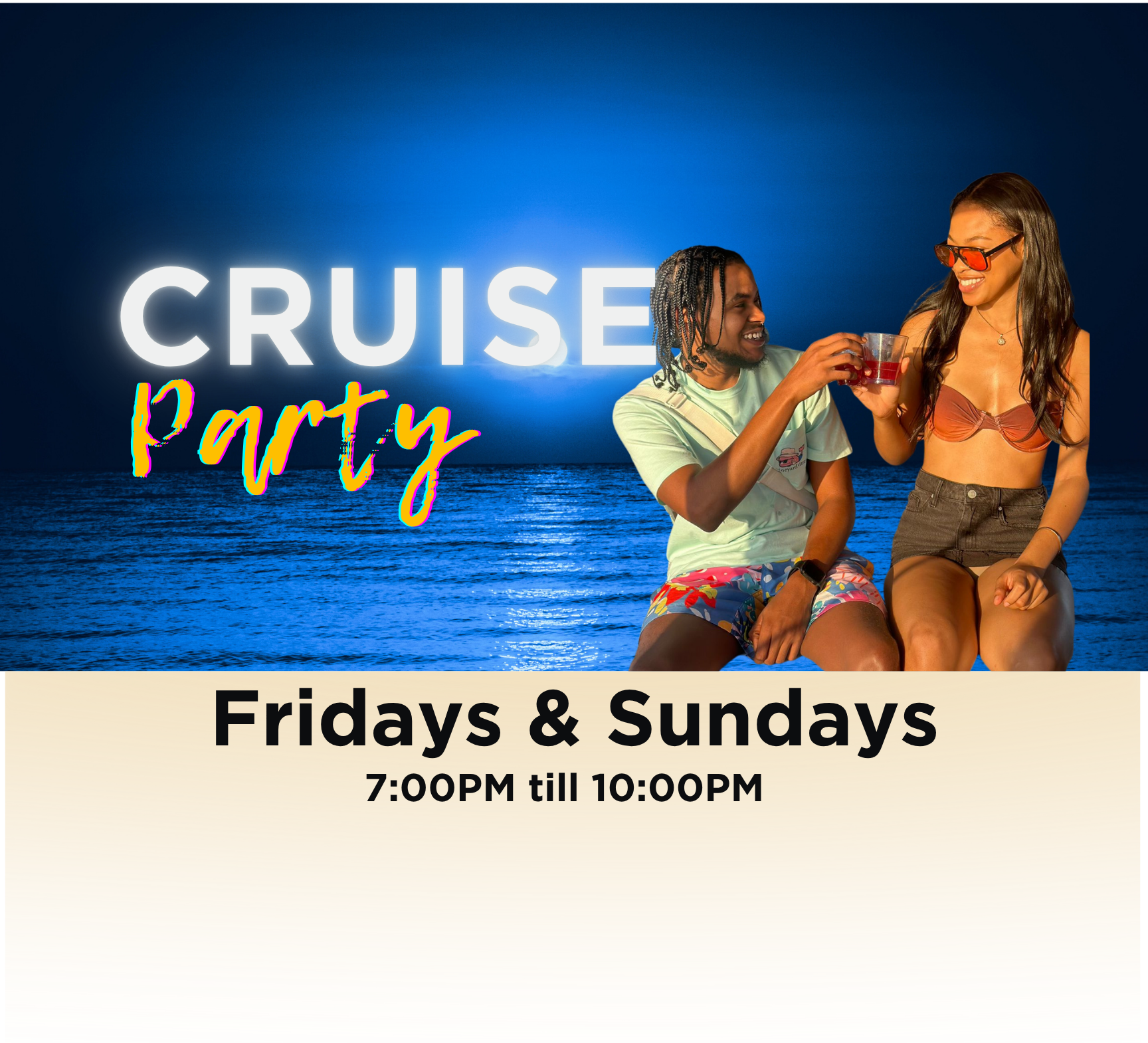 Vibes on the Caribbean Sea – Departing Fridays & Sundays from Port Royal Pier in Kingston, Jamaica and sailing from 7:00 PM to 10:00 PM. Cruise includes light snacks & open bar.
